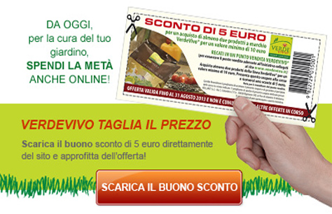 Sfruttare questa opportunità è molto semplice: è sufficiente ritagliare il coupon che si trova nella pagina pubblicitaria di VerdeVivo, presente sui maggiori newsmagazine (DIPIU’, GENTE, D CASA, D LA REPUBBLICA DELLE DONNE, IL VENERDI, LA REPUBBLICA , CORRIERE DELLA SERA, SETTE, OGGI, VITA IN CAMPAGNA, IL MIO GIARDINO) oppure scaricarlo direttamente dal sito VerdeVivo e stamparlo. Con questo buono ci si può recare in uno dei rivenditori VerdeVivo Master Dealer, l’elenco dei quali lo trovate nel sito di VerdeVivo e usufruire dello sconto.