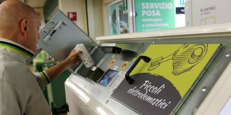 Ecolight ha sviluppato anche dei cassonetti specifici per la raccolta dei micro RAEE e delle lampadine a risparmio energetico appositamente da collocare all’interno dei centri commerciali. “Abbiamo ribaltato l’approccio: non sono più i cittadini che devono andare negli ecocentri comunali per conferire i rifiuti elettronici, ma sono le ecoisole che vanno dove si trova la gente. Inoltre queste soluzioni sollevano i negozi dalla compilazione di moduli, permettendo loro di rispondere agli obblighi di legge”.