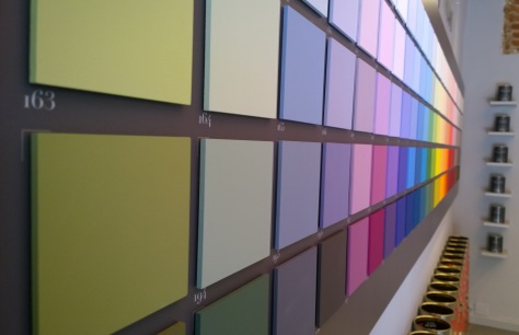 Lo store è piuttosto piccolo (in realtà è grande quanto serve) ma molto coinvolgente. Tutti i tasselli di colore “calamitati” (sono magnetici – n.d.r.) alle pareti possono essere facilmente rimossi e appoggiati su un piccolo tavolo (anche in questo caso si “calamitano” sulla sua superficie), consentendo così di provare i diversi effetti dati dall’accostamento dei diversi colori.