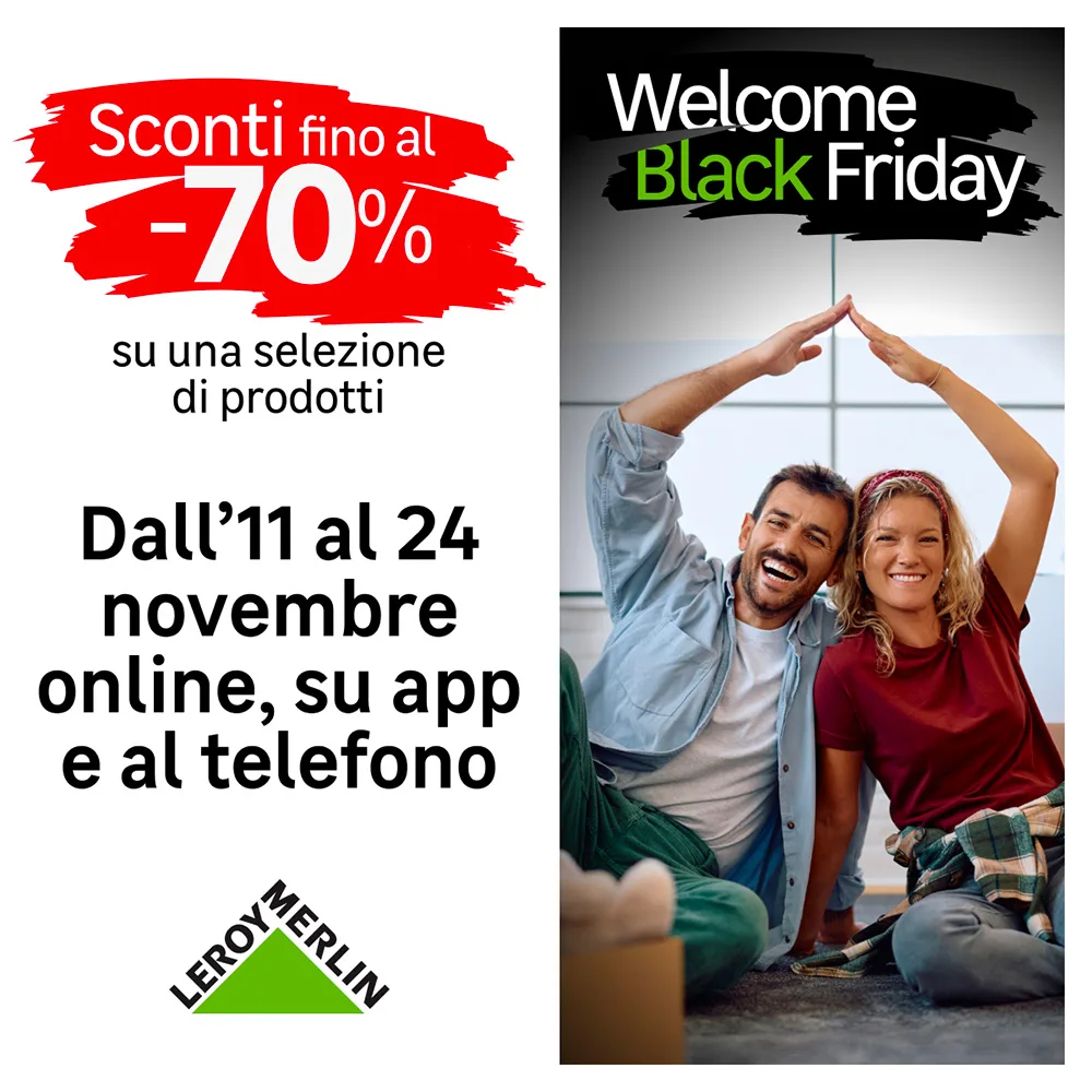 Ultima settimana di sconti fino al 70% per il Black Friday di Leroy Merlin che quest’anno si presenta ai clienti in modo piuttosto articolato. E non finisce qui.