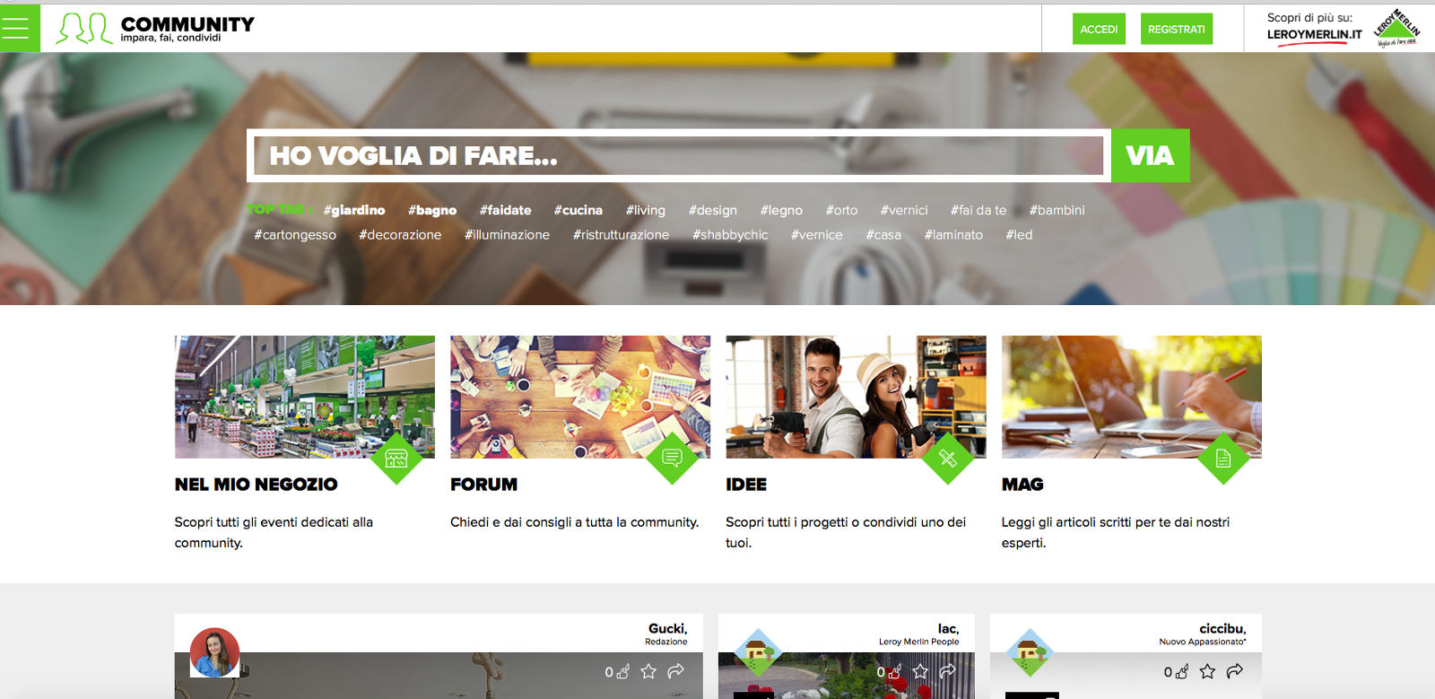 Impara, fai, condividi. I nuovi comandamenti della nuova community Leroy Merlin on line da oggi, mercoledì 6 luglio. 4 le sezioni principali.